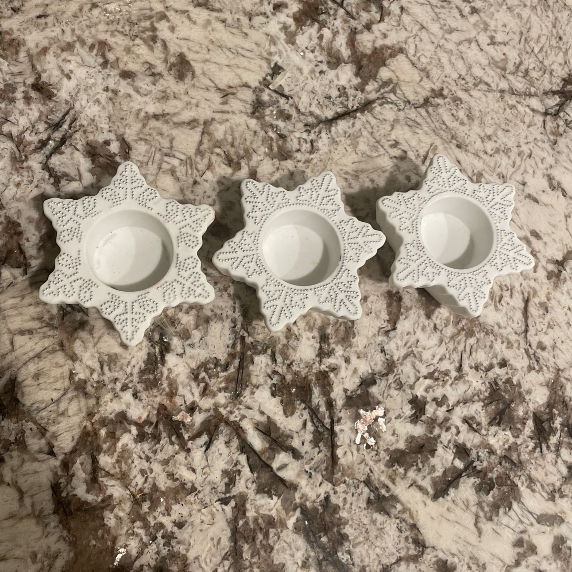 Set Of 3 Retired Partylite Floating Snowflake Tealight Holders