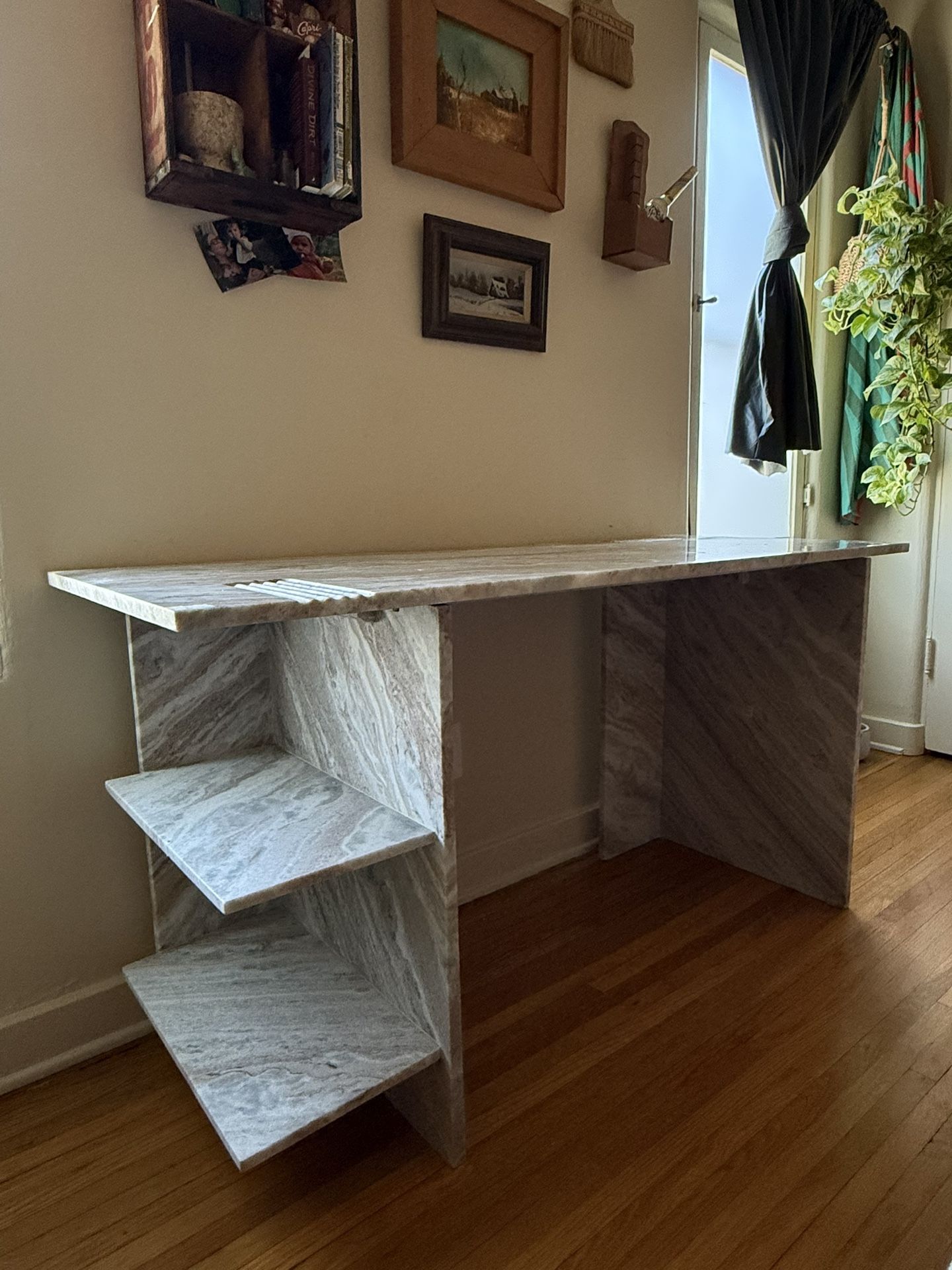 I don’t want to let this go but I just don’t use it. This has been such a pleasure to own! Purchased it new in January 2023. It’s in perfect condition. This comes apart in 3 pieces Dimensions: Width: 56" Depth: 22.5" Height: 29.5" It’s heavy and needs two people to load. I recommend coming with lots of blankets and padding as the top is one giant slab of marble. Reach out with any questions