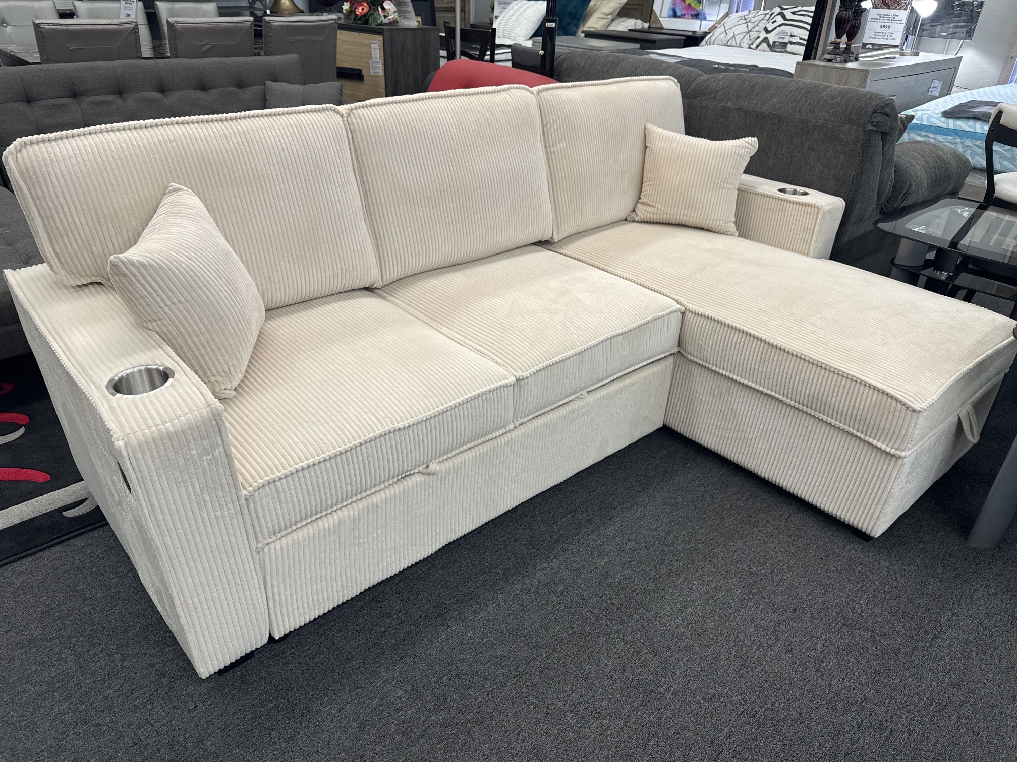 Includes: Reversible Storage Chaise W/ Cup Holder & Sofa W/ USB Port Materials: Corduroy Fabric Dimensions: Overall: 89" x 34" x 36"H