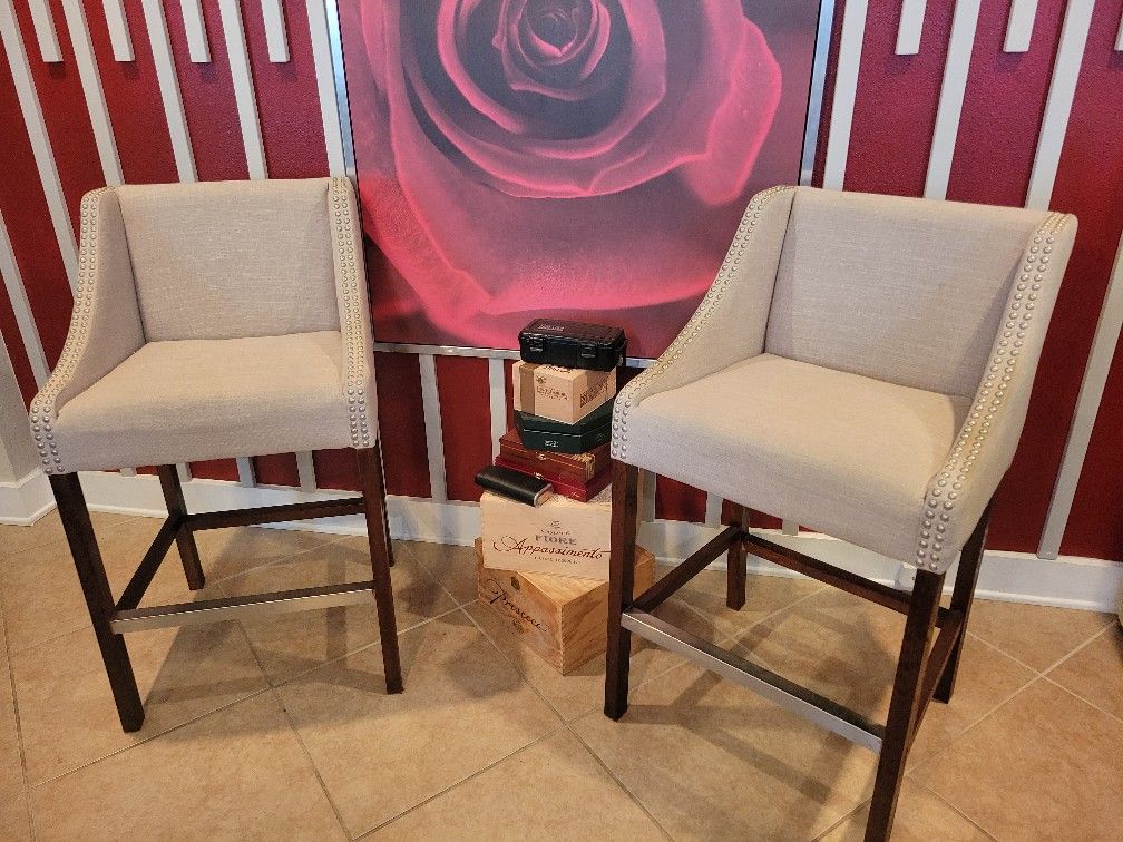 2 Beige Linen Unpholstered Counter Stools. $50 each, OBO. Selling because they don't match my new decor. Hardly used. Seat height is 28" but they fit at a counter comfortably. Pick up only