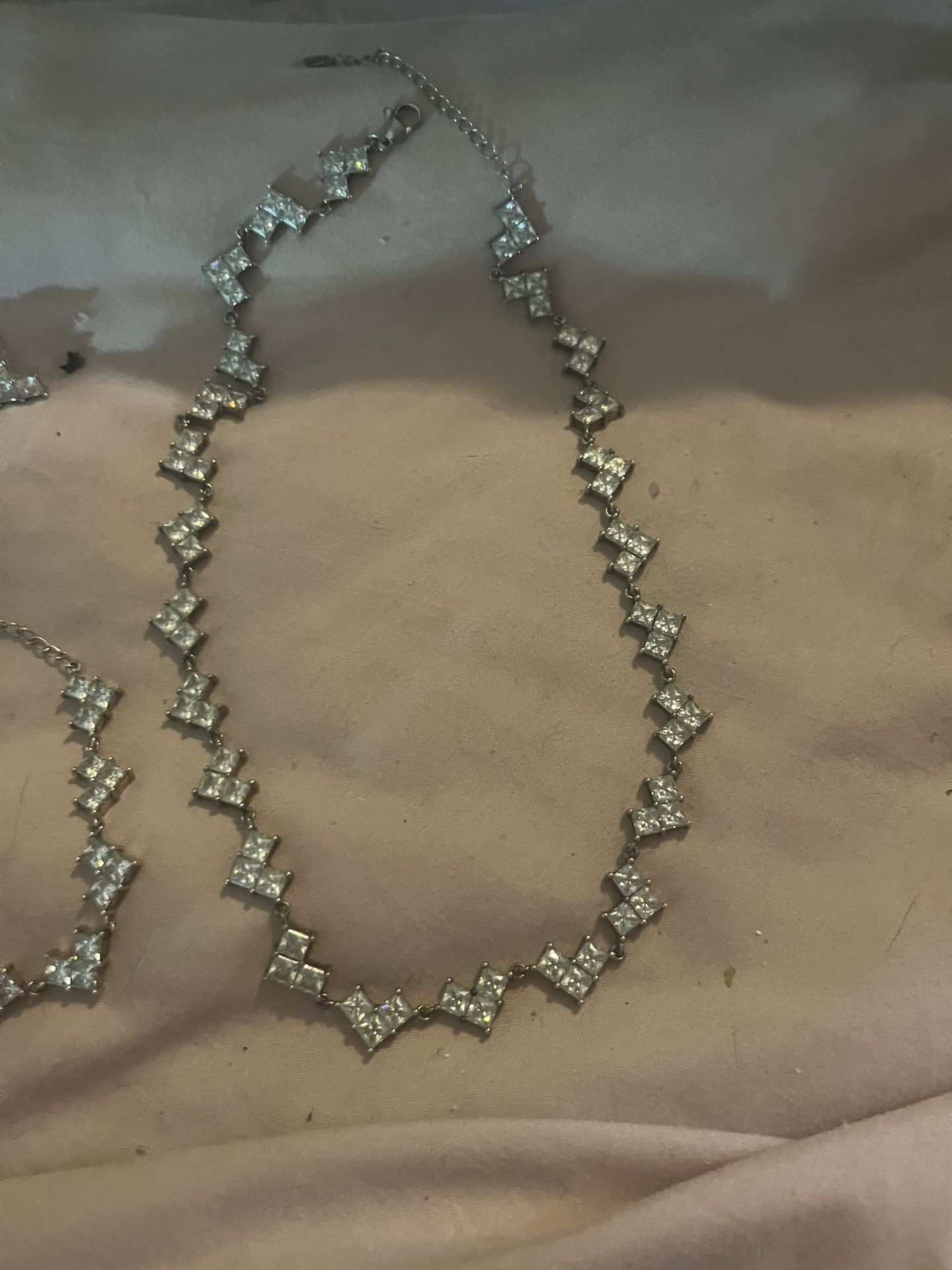 24 carat lab created diamond tennis necklace 16-18” 925 sells for $583 10 carat tennis bracelet 7-8.5” 925 sells for $253 1 pair of 2 carat earrings 925 The necklace alone sells for over 500 This is a Christmas special Every thing will be tested with diamond tester