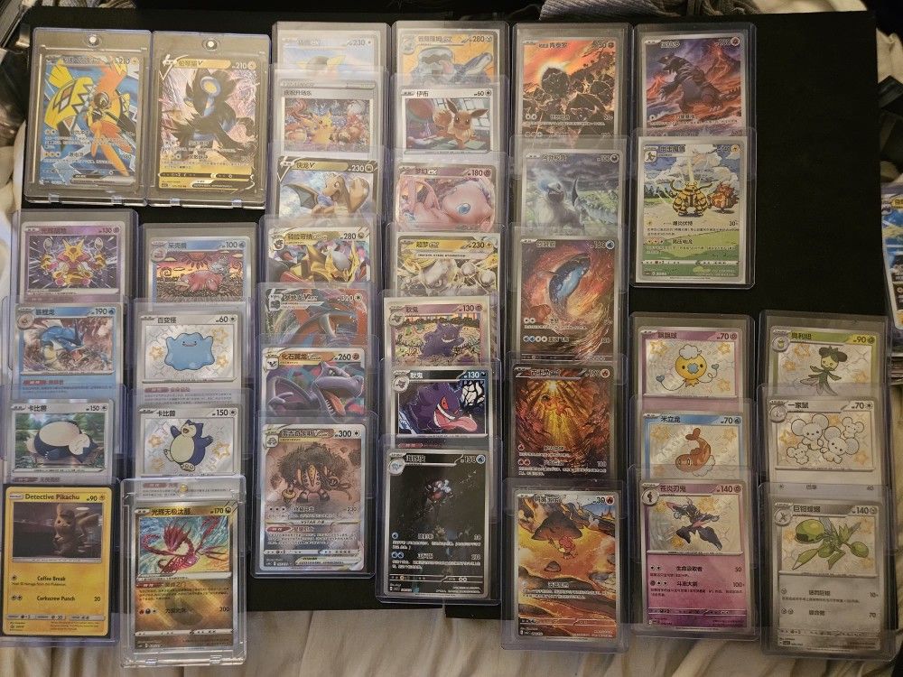 In the lot theirs alot of exclusives some that came in a gift box that was only sold internationally for 3 months before it got discontinued.. make them super rare These are considered first print run/1st edition. As they have no rarity... the baby shinys are conaidered secret rares secret shiny non rarity..... ARs that are only now in promo rarity these cards are not.. Alot of super rare one day future grails Also 150 ex v vmax vstar. 40 holo energies
