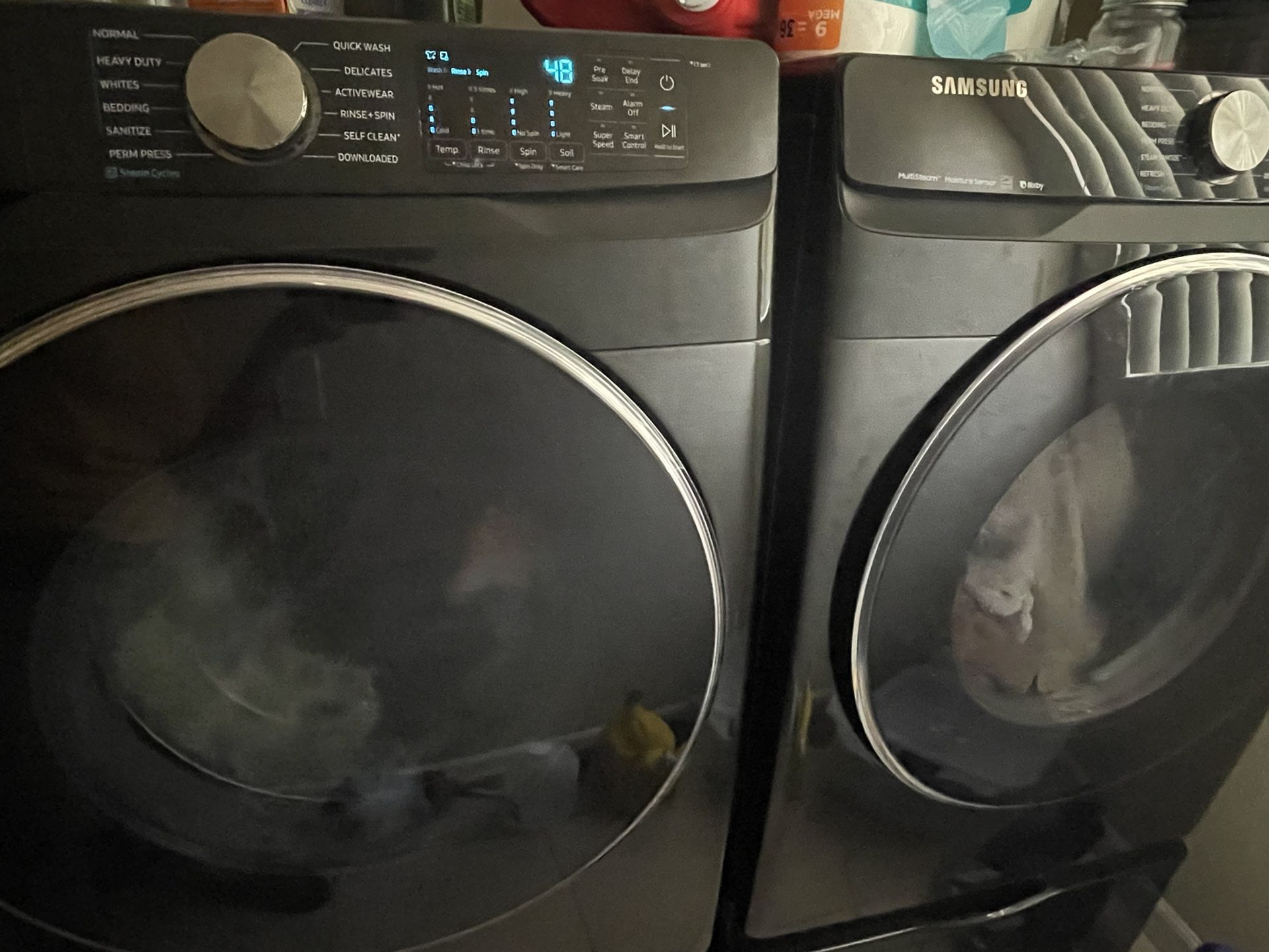 Samsung Smart Front Load Washer & Dryer Set + Pedestals – Black Stainless – Excellent Condition Selling our Samsung washer & dryer set (purchased 2019). Only selling because new unit already has appliances. • Fully functional – zero issues • WiFi enabled – control from phone • Large capacity • Electric dryer • Matching pedestals included • Hoses + power cord included • Minor cosmetic scratches on top only Clean, well maintained, works perfectly. $1,100 OBRO Serious buyers only. Pickup only. Must bring help to move. Cash or Zelle only