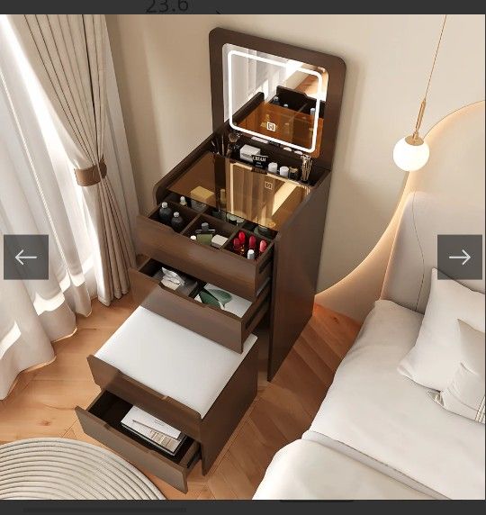 3-in-1 Walker Edison Compact Vanity Great Vanity for small spaces, cushioned seat that completely hides away under the vanity. Light up mirror with 3 lighting options Like New - I've had it for less than a year. Love this vanity but can't take it with me!