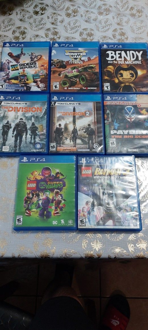 Rider's republic - 20 Monster jam steel titans - 10 Bendy and the ink machine - 15 Tom Clancy the division - 5 Tom Clancy the division 2 - 5 Payday - 10 Lego Dc super villains - 10 Lego batman 3 - 10