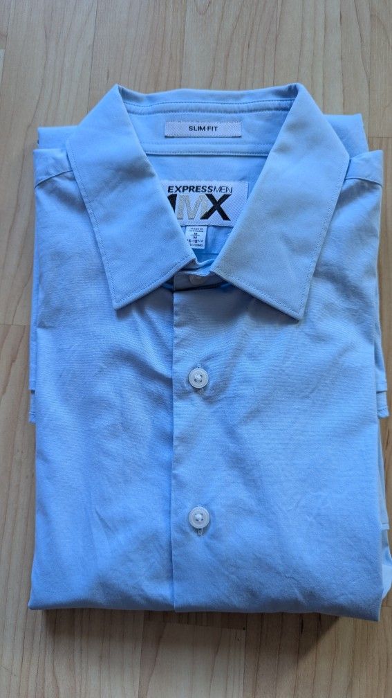 I have multiple dress shirts from EXPRESS that don't fit me any more. They are in good condition and some of them I used only once or twice. Brand: EXPRESS Size: M Collar: 15-15.5 Long/Tall Extra Slim Fit White shirt is Small but fitted 10$ each Better price if you get multiple.