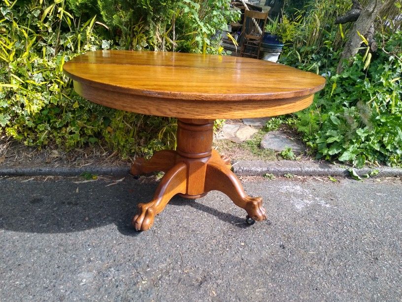 Antique Oak Claw Foot Pedestal Base Dining Table With Leaves