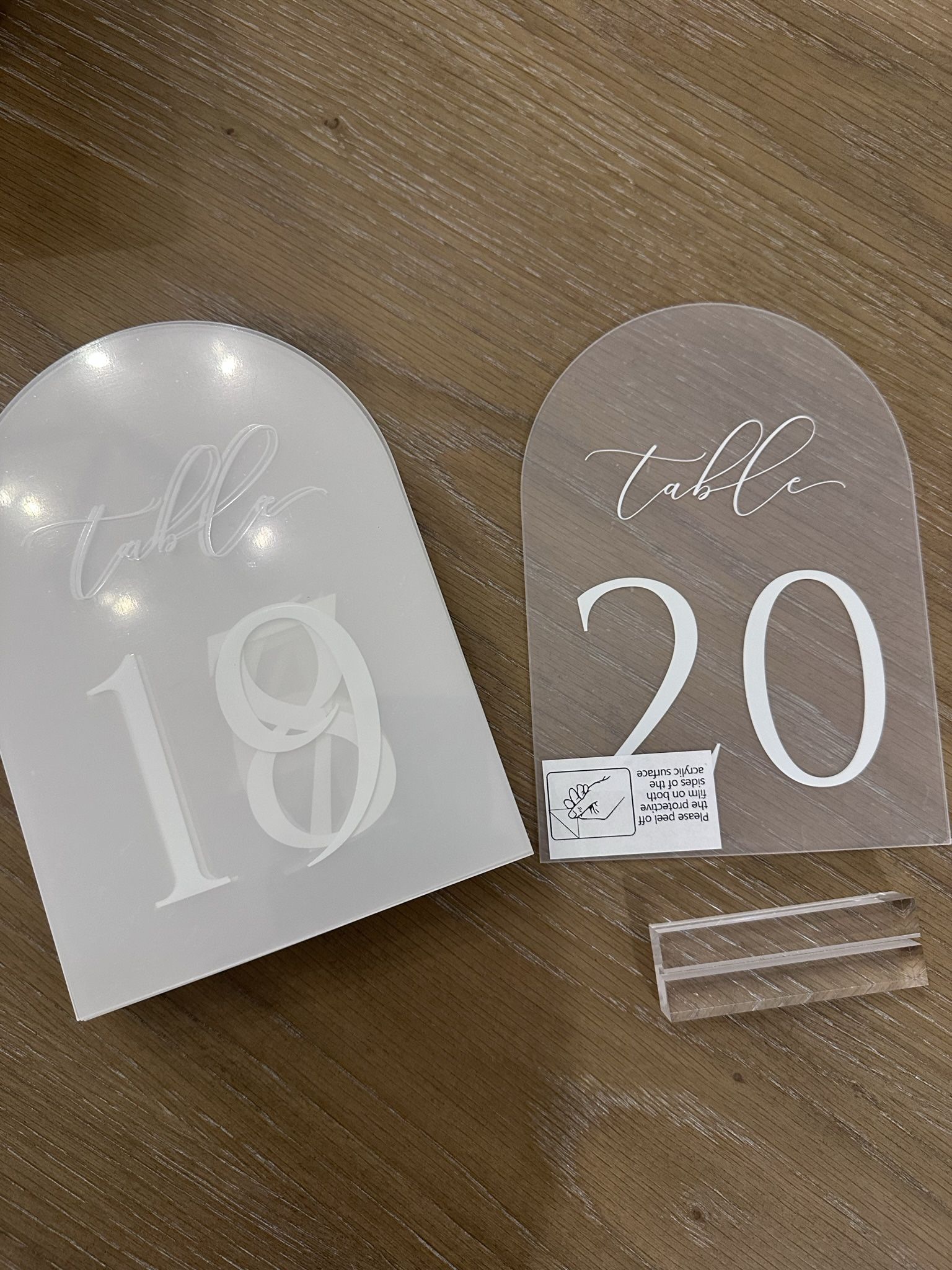 Clear acrylic arch (5x7) table numbers 1-20 with stands
