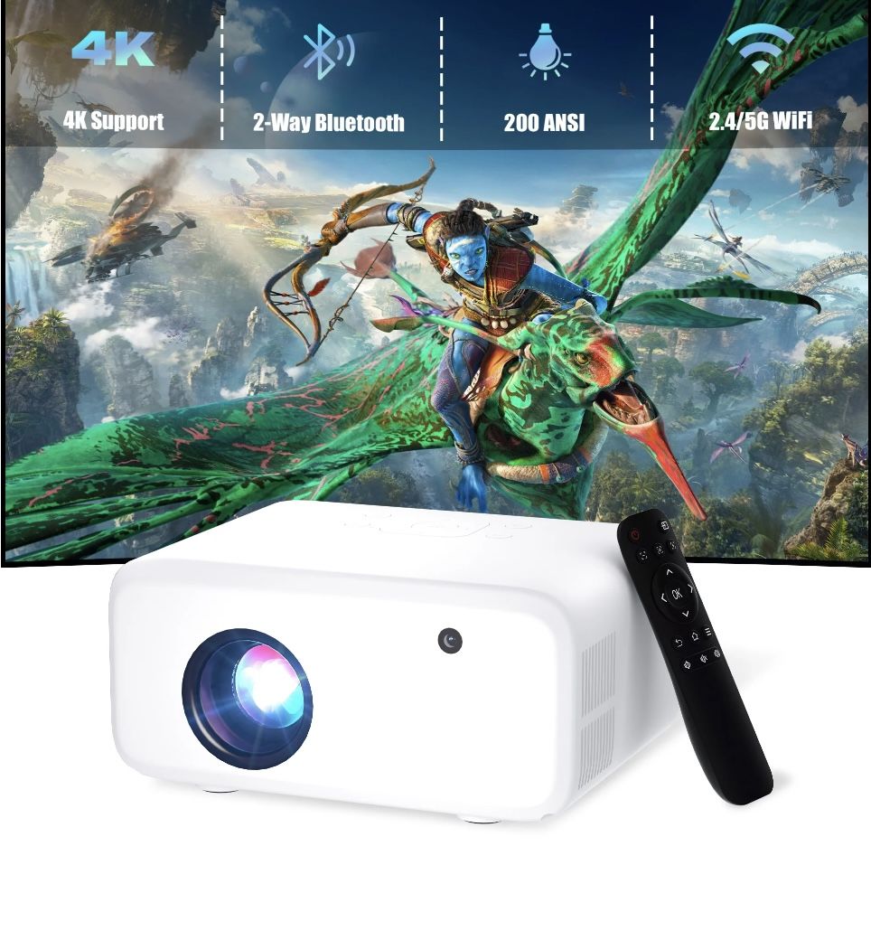 Visulapex Projector 4K 1080P Support, Mini Projector with WiFi and Bluetooth, Outdoor Movie Projectors