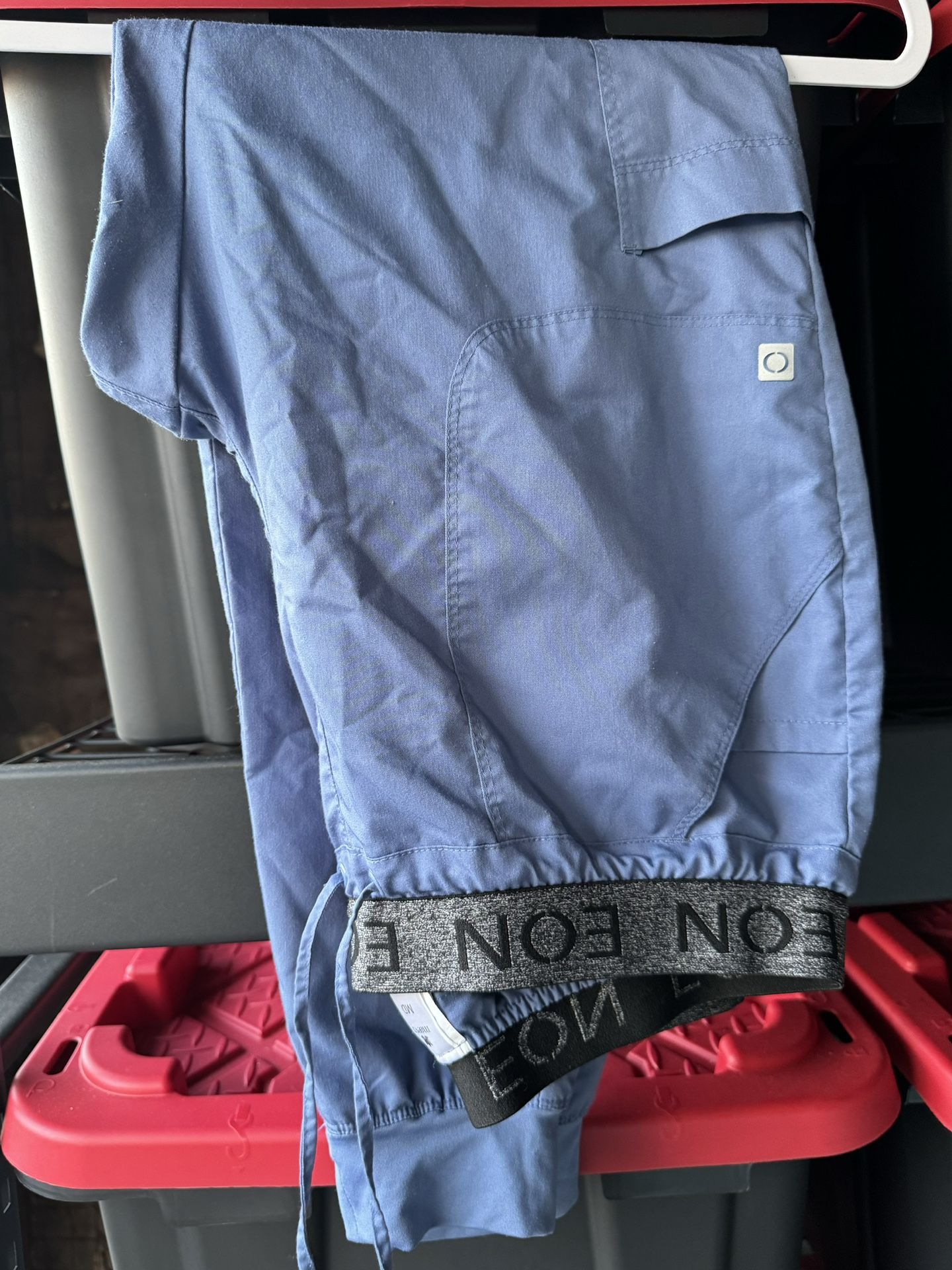 Scrub joggers in a size medium. Very stylish with the jogger leg. They are in a slate blue color and have an elastic waistband. Very good condition, like new