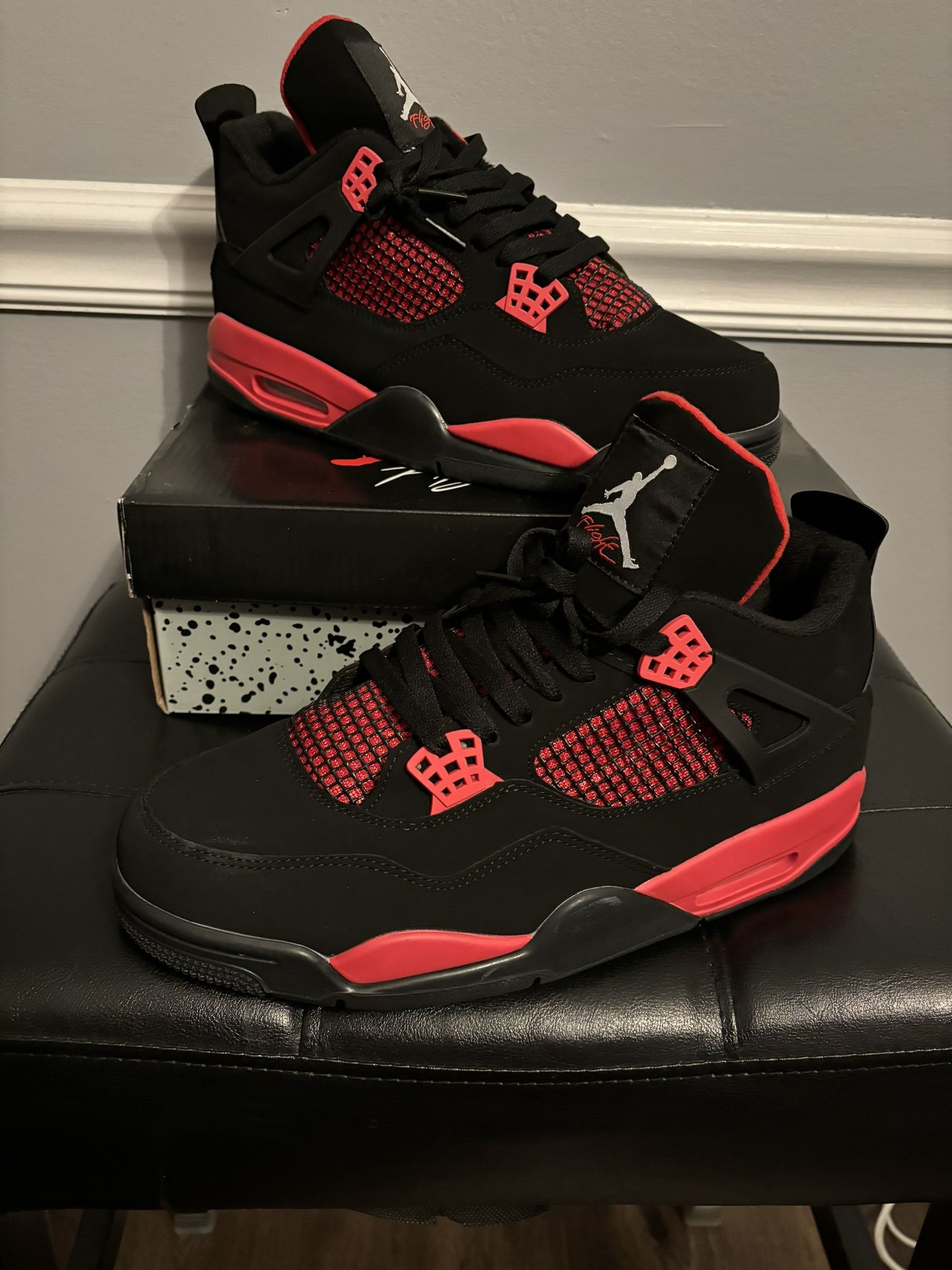 Black and Red Jordan 4 Shoes Comes with box Size 10 for men Great price