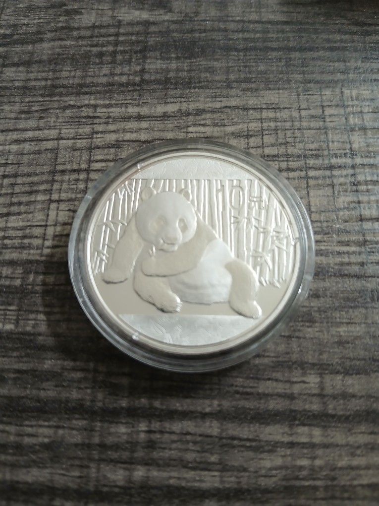 2015 Chinese Silver Panda coin, a bullion coin series issued by the People's Republic of China since 1983. This particular coin is made of 1 ounce of .999 fine silver