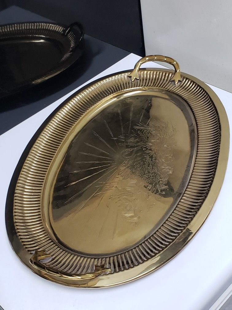 Massive Gold Plated Handled Tray