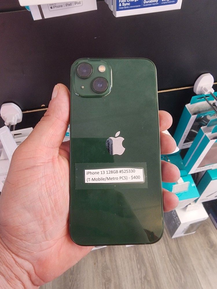 Apple iPhone 13 128GB in Green (T-Mobile, Metro PCS, Simple Mobile, Sprint). Good Condition with all original parts. Brand new charging cable included. PLEASE NO OFFERS - All Offers will be ignored. Only message me to either ask questions about the phone or to schedule pick up. We are a retail store not private sellers. Hablamos Espanol. Price firm (Precio firmo). Cash Only Deal - Solamente Efectivo. Trade ins accepted for New, Used, and Broken phones (Acceptamos Intercambios). In store pick up only - No shipping. Long Island Wireless 1884 Deer Park Ave Deer Park, NY 11729 (Outside sign now says Total By Verizon but on Google it pops up as Long Island Wireless).
