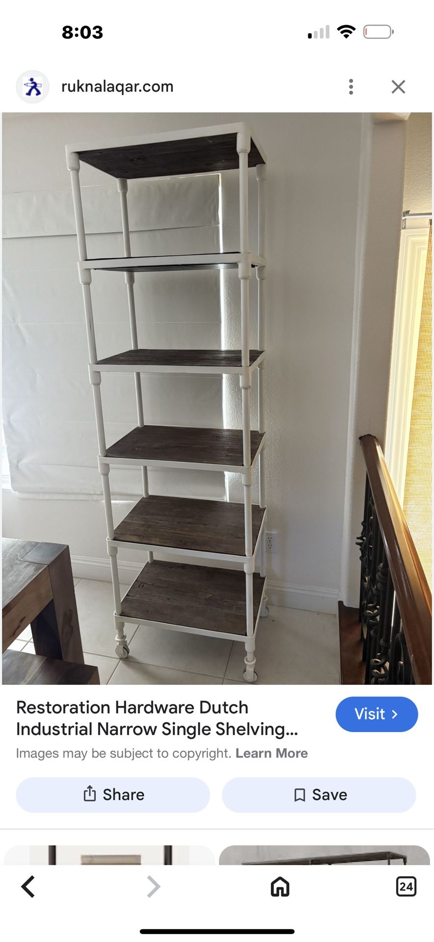 selling one RH Dutch white shelving with rustic wood on each shelf 23.5ʺW × 16ʺD × 79ʺH