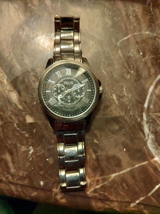 An Excellent Condition Used Large faced Men's Folio Dress Watch Gunmetal Grey.. I accept Cash app or Cash only.. Priced for quick sale..