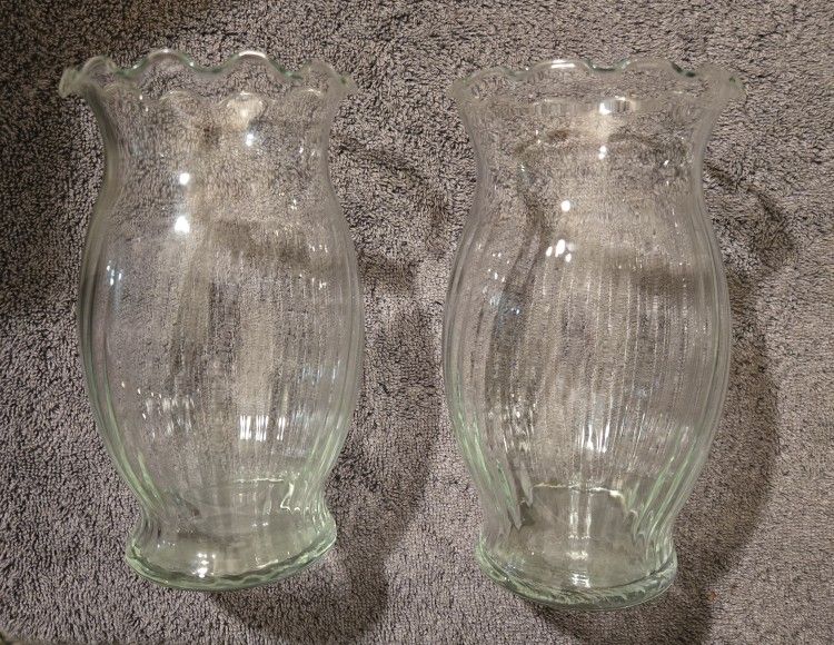Set of Two Clear Swirl Glass Vases With Wavy Top