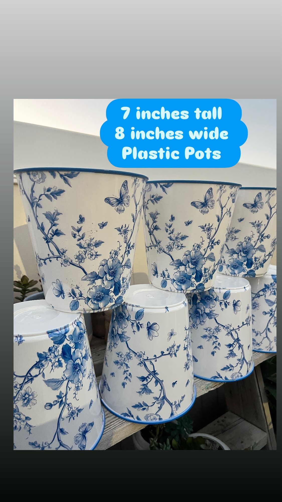 Plastic pots 7 inches tall and 8 inches wide $3 each one