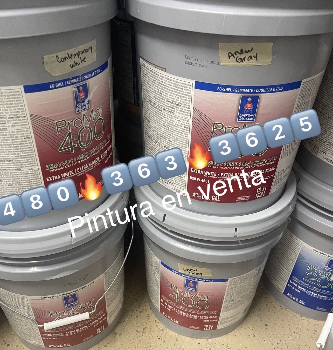 Llámame 4️⃣8️⃣0️⃣🔥3️⃣6️⃣3️⃣🔥3️⃣6️⃣2️⃣5️⃣ Pintura y material en venta para casas, trailas y bardas Variedad de colores para interior y exterior Flat, eggshell, satin, semigloss Primer sellador para drywall, stucco, bloque, ladrillo, metal Loxon, Quick Dry, PVA, EFFStop, vinylastic, Material para pintores papel, tape, caulking, plástico CP6, 101, (tips, lineas, pis.tolas) para sprayar, rodos, brochas, lijas, rags y mucho más Toda pintura, primer y material tienen diferentes precios Nuevo y sellado 📲 480 💥363💥3625 llámanos para más información New paint buckets for ceilings and walls Interior and exterior paint Paint & supplies Different colors and prices