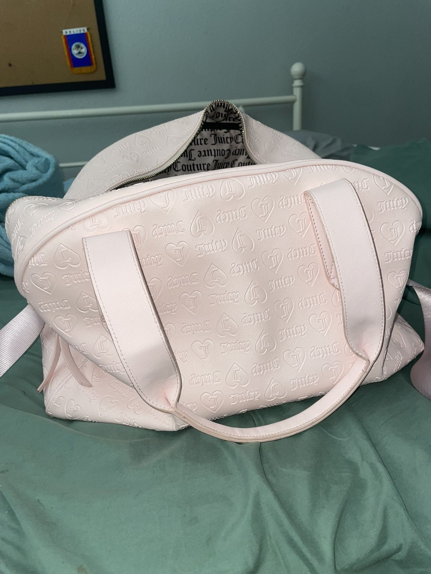 I bought this juicy couture because I collect them but I have too much and I’m selling my duffle bag for 40$ (Price negotiable) Pros! - great condition -barely used - very spacious a stylish Con! The zipper had been acting weird since I got it Hopefully someone can fix it!