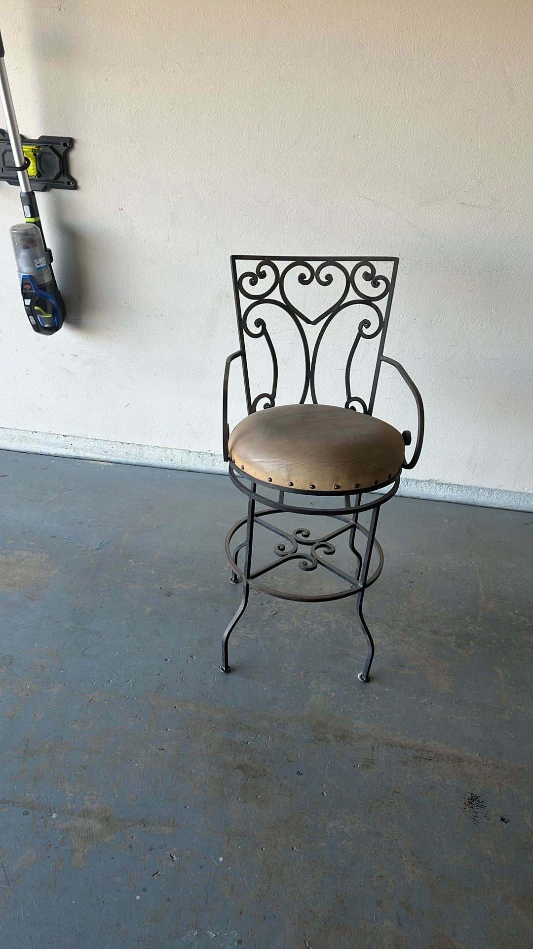 Iron bar stool, only be indoors, leather seat, solid $65.00 OBO