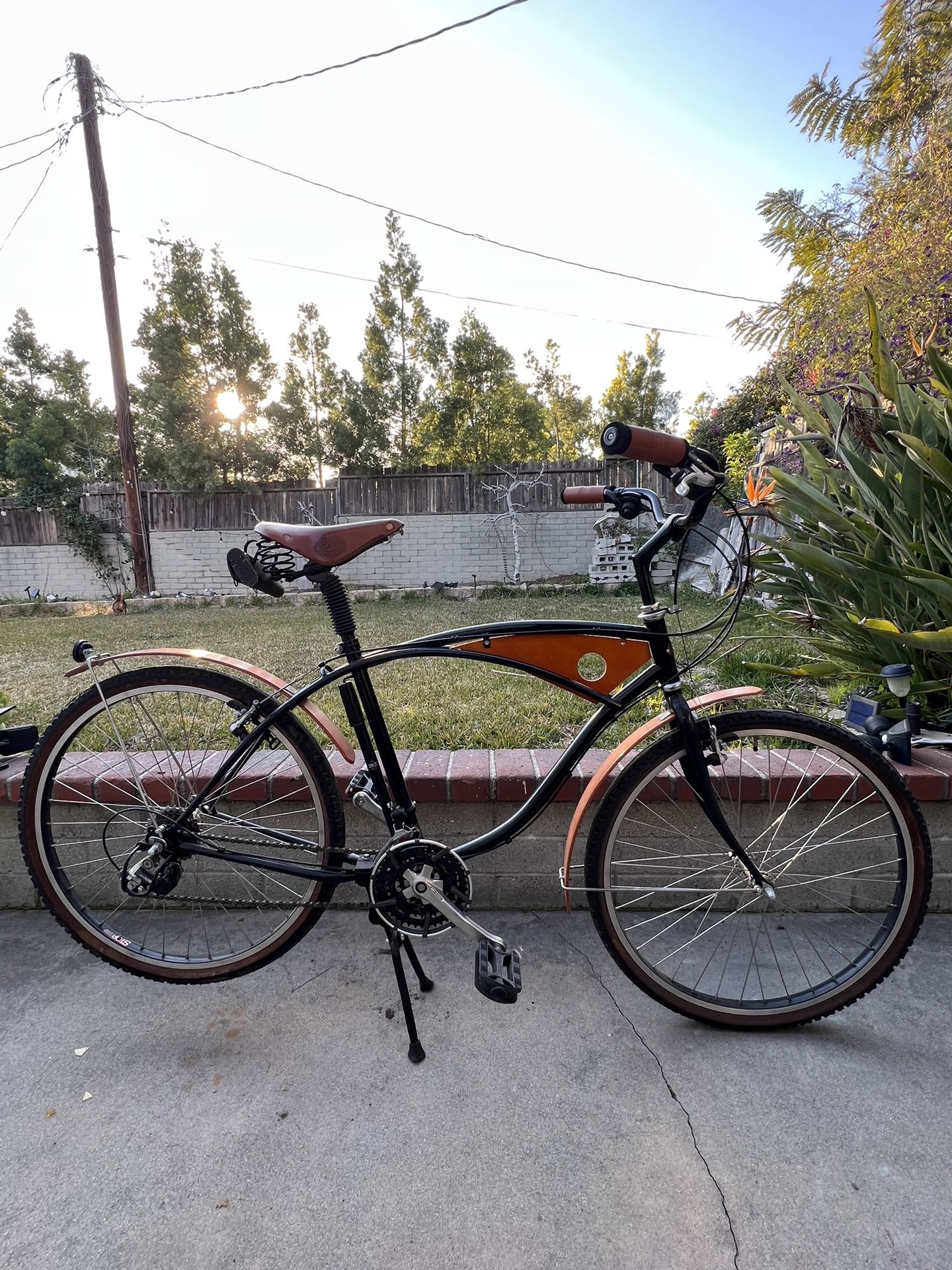 Only 500 made this is number 120/500. It has wooden fenders and a brooks saddle. 18 speed. Technically bicycle has never been ridden. The tires are original, it was purchased brand new in a box then assembled and that’s that. Someone who’s 5’2 to 5’9 can ride it.