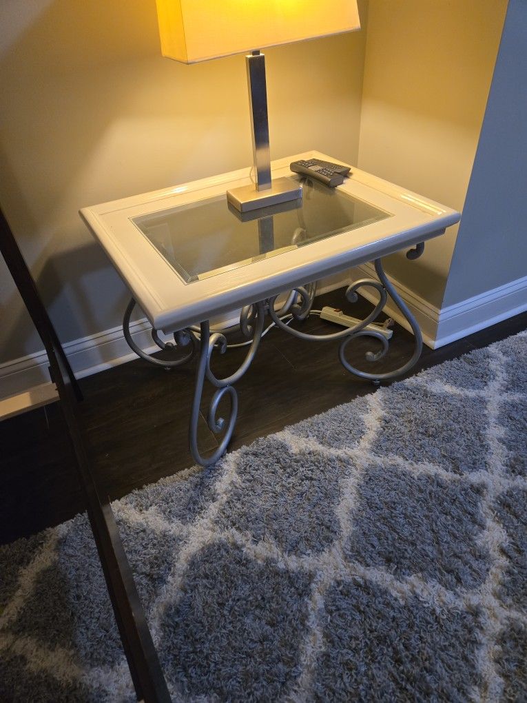 Wrought Iron And Wood Table/ Console - White And Silver
