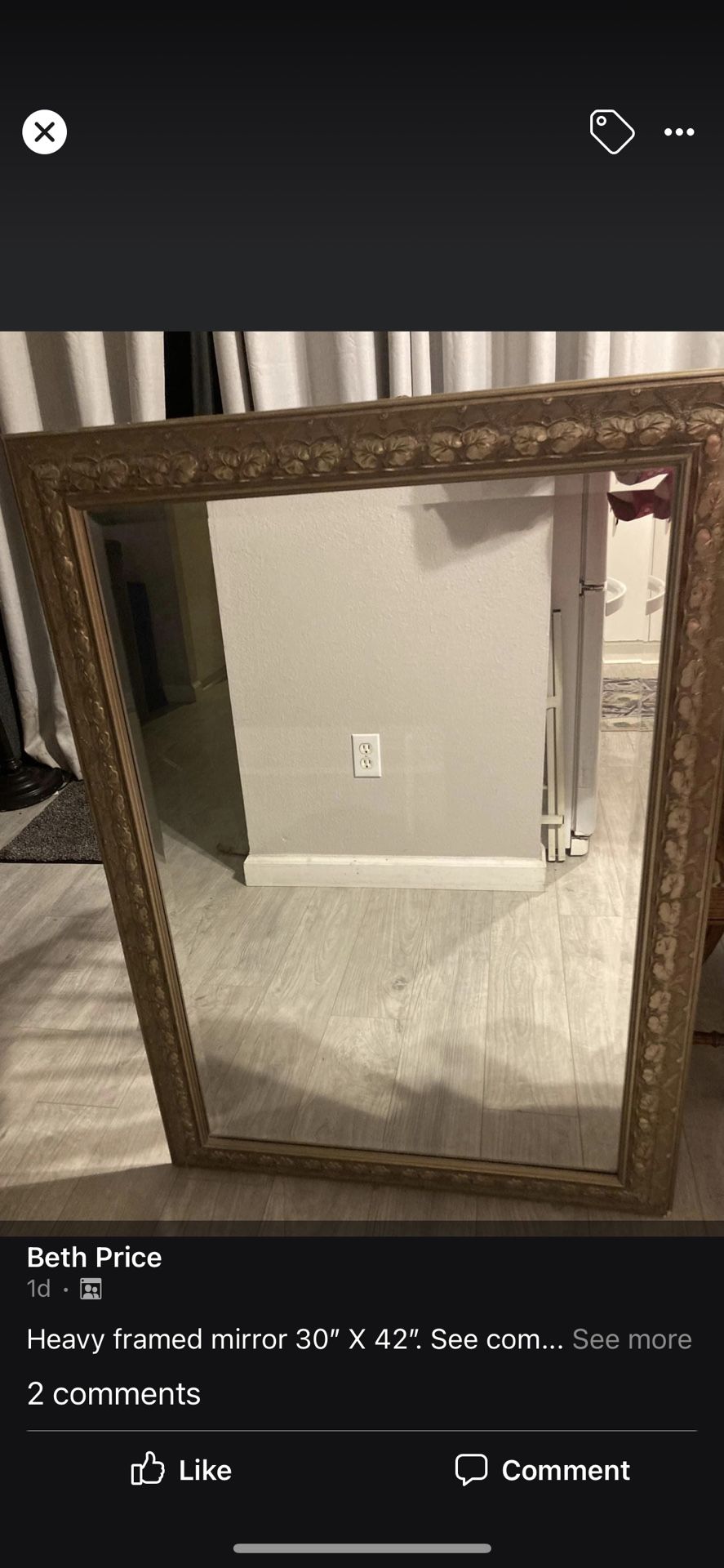 Two mirrors Only have dimensions for bigger one which is 30” X 42”