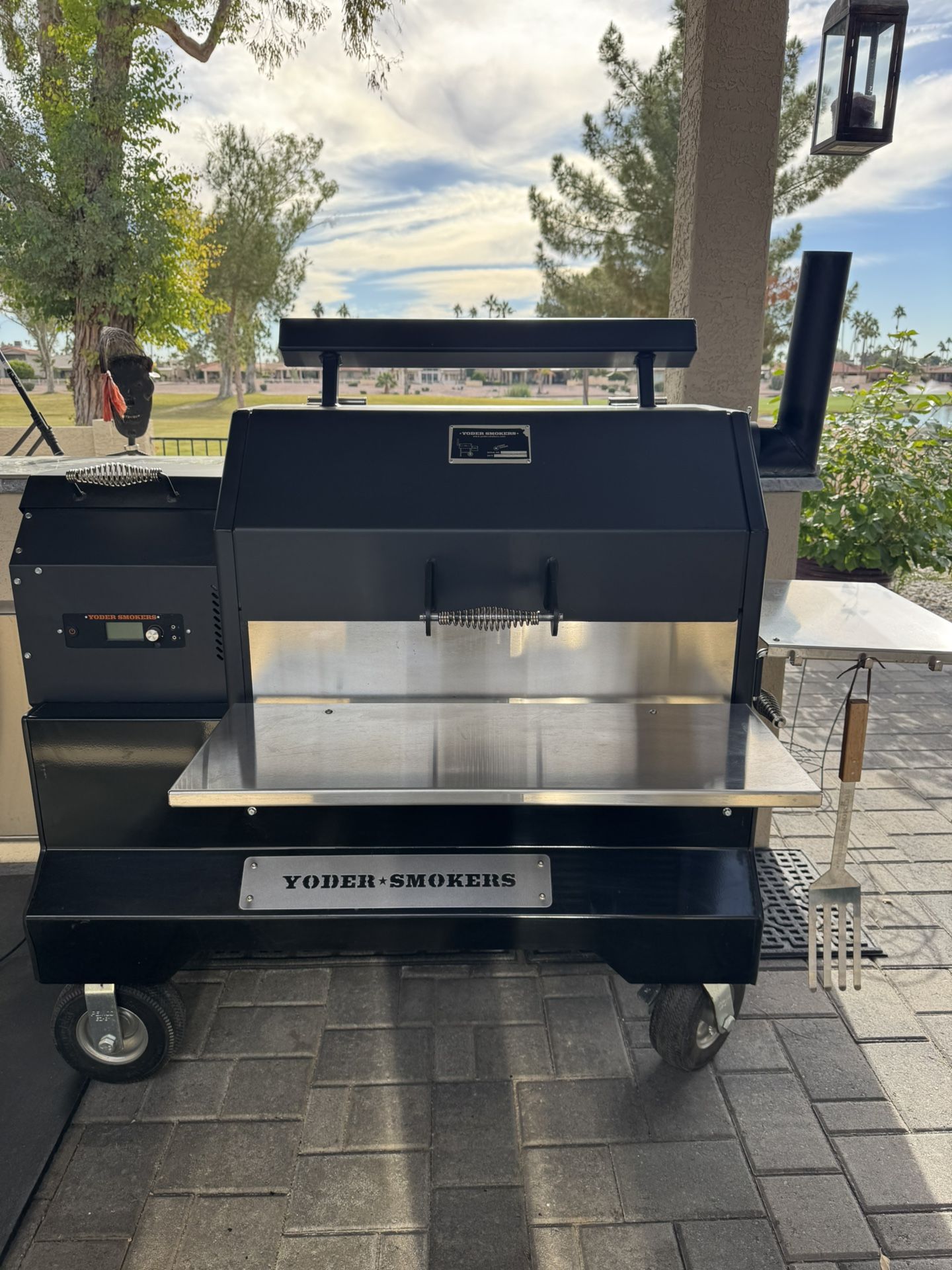 YS640S competition smoker Retails for $3199. Includes over $800 in accessories. A high performance grill designed for serious outdoor cooks built with robust, heavy gauge, steel combines, durability and versatility. Ideal for both direct and indirect cooking, and it includes a smart control system for precise temperature management. This model is mounted on a competition grade cart, which provides heavy duty wheels on an expanded chassis, making it easy to transport over rough terrain. The grills sophisticated design accommodate everything from low and slow smoking to high heat searing making it perfect for a wide range of cooking styles and events. Includes: Stainless steel shelves. Retails $318. Direct grill rates with spatula. Retails 139. Competition cart cover. Retails $239. Stainless steel drip shield. Retails $129. 2 bags of pellets. One year old Transferable warranty