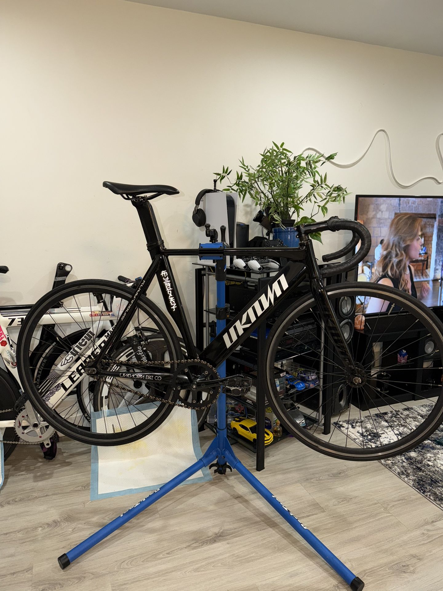Unknown singularity size 52-53 track bike Carbon, aluminum unknown fork Carbon spacers, aventon 110mm -7 stem, zipp flat drop bars Full carbon seat post SKU wheels 16tooth cog - 46 tooth chainring New Izumi black and gold chain Ready to ride $450