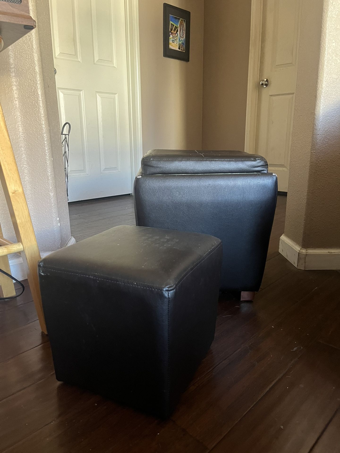 Square End Table for Living Room and Bedroom Black Faux Leather Moving Friday, Pick Up must be by Thursday