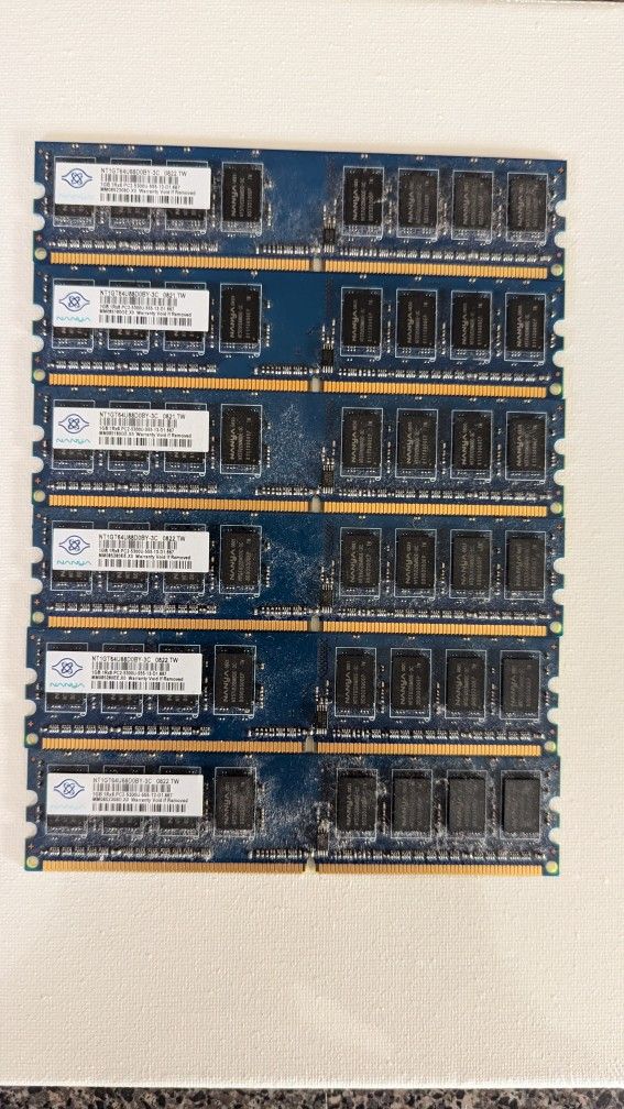 Selling 6 sticks of DDR2 1GB PC2-5300U 1Rx8 RAM. They work fine, no issues. $5 total for all 6 sticks
