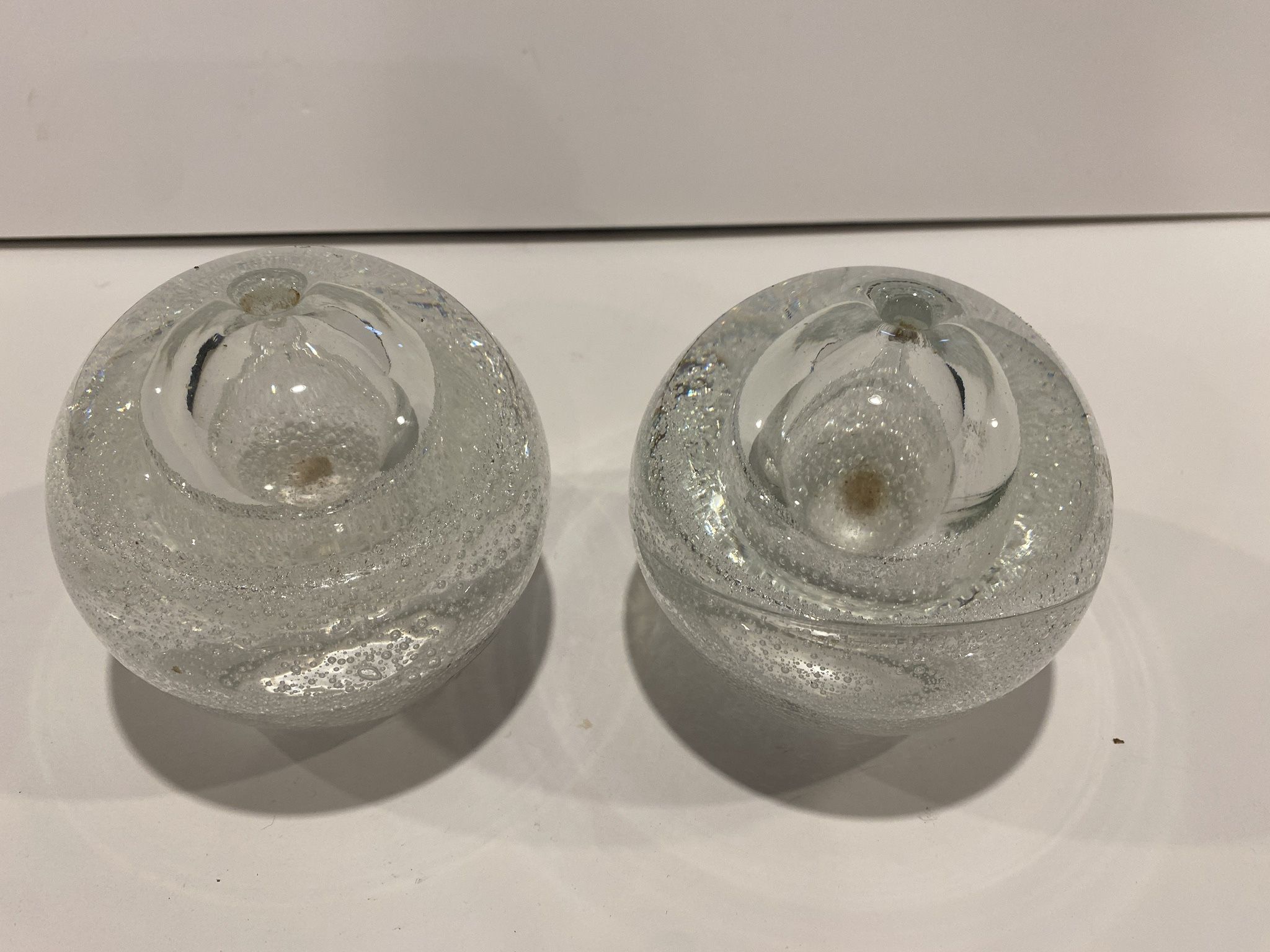 Vintage Clear Round Bubble Glass Oil Lamp Paperweight Handmade in Poland small chip on the bottom of right one (see photo)