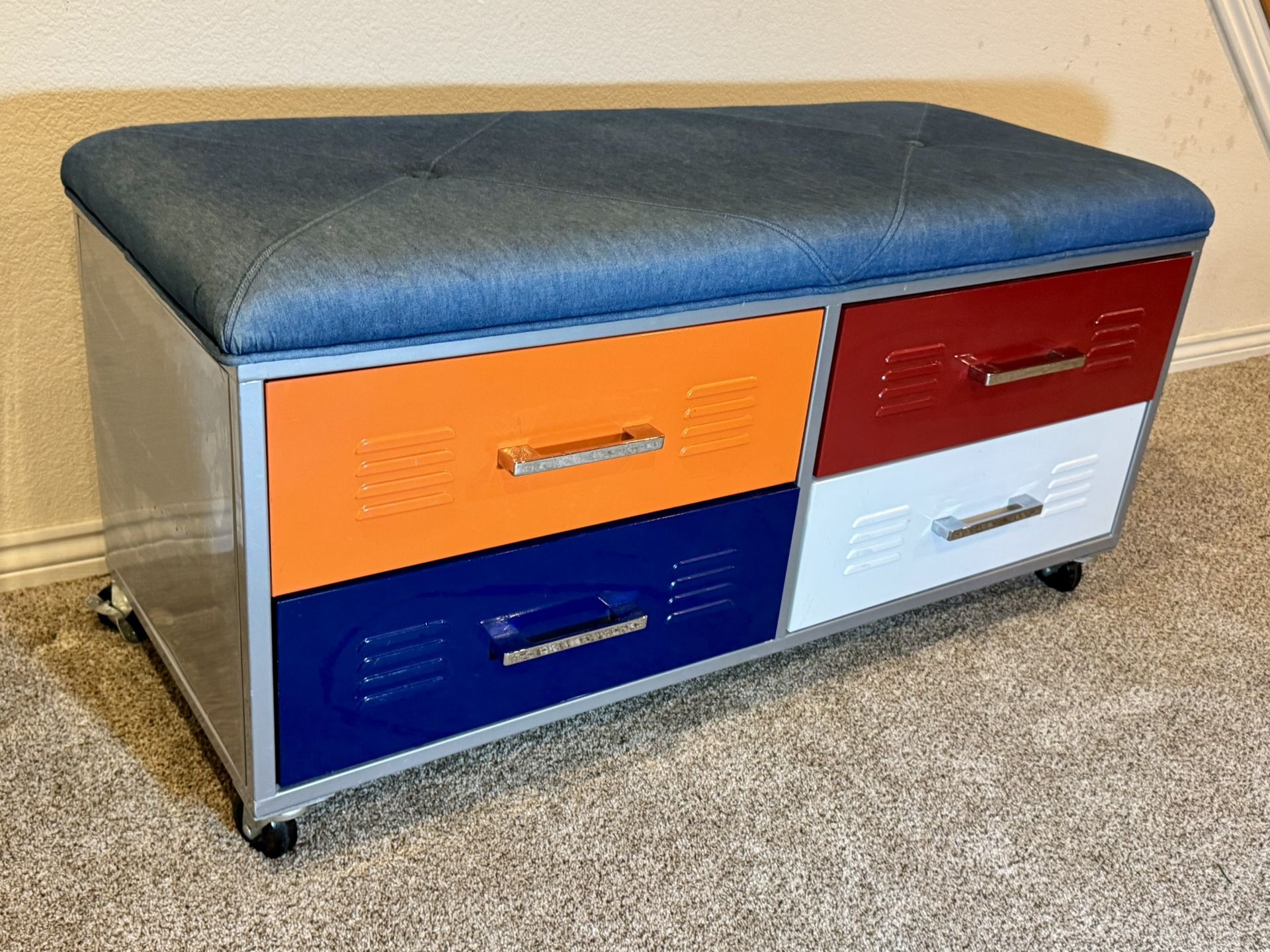 Colorful Metal Storage Drawers Bench