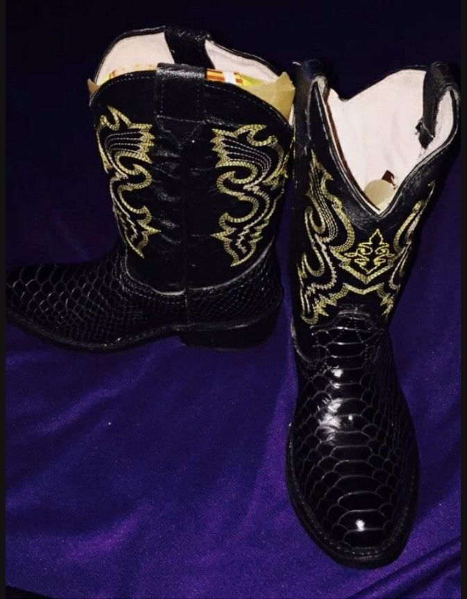 These are authentic boots from Mexico (Botas Pedrito) made from quality materials. It has detailed designs and can comfortably fit a child ages 6-7 (size 21 Mex). Estas son botas auténticas hechas en México (Botas Pedrito) usando materiales de calidad. Tiene diseños detallados y caben cómodamente a niños de 6 a 7 años (talla 21 mex).
