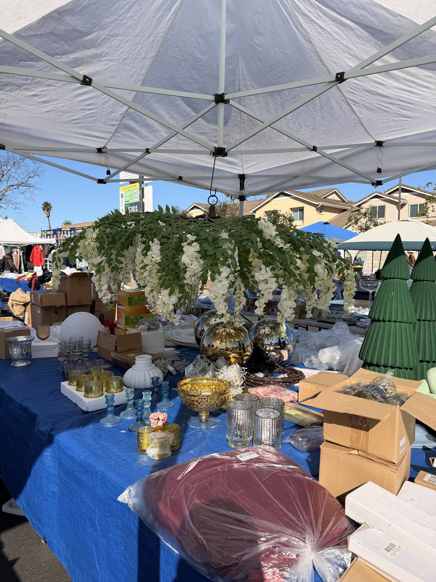 Cream Artificial Silk Wisteria Vine Round Hanging Canopy, Draping Garland Flower Chandelier With Interchangeable Branches 55"