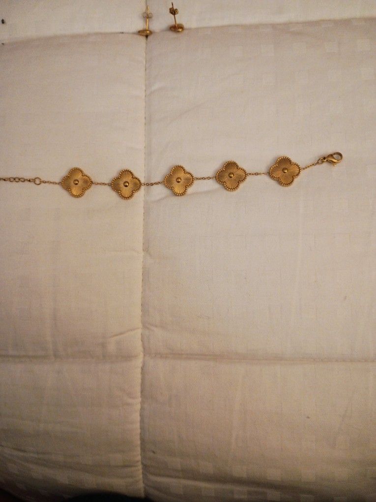 Alhambra Bracelet And Necklace 18K Gold Plated (Not Van Cleef)