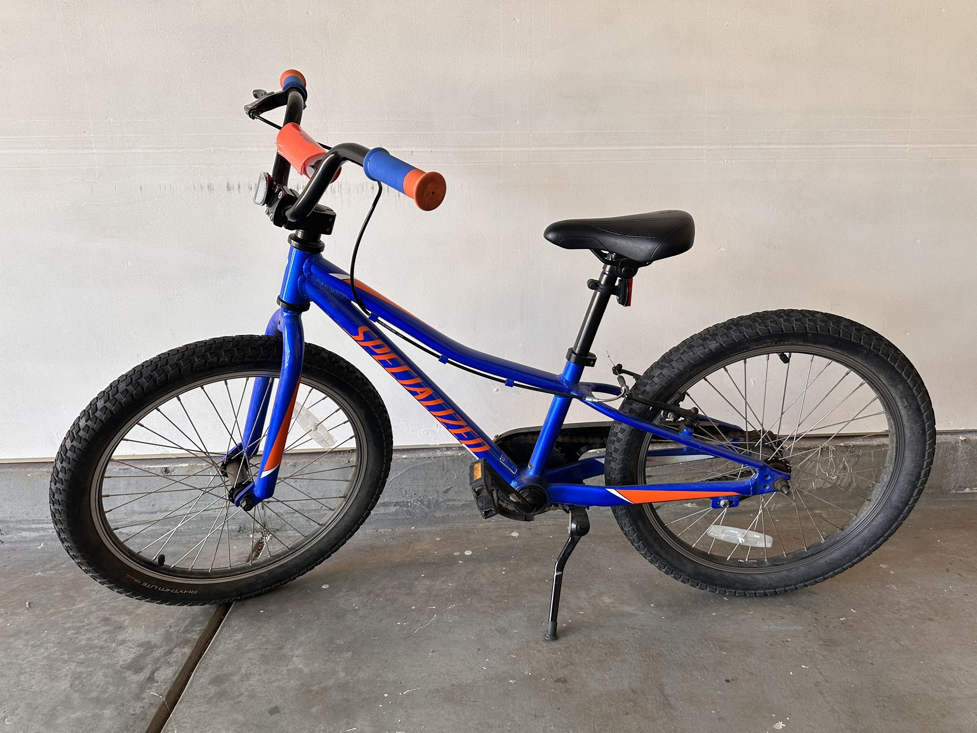 Specialized Riprock 20" Coaster Bike (Royal/Moto Orange/White) (20") Specifications: * Frame: Specialized A1 Premium Aluminum * Fork: Hi-Ten Steel * Front Hub: Steel (Bolt-On) (Loose Ball Bearings) (36H) * Rear Hub: Coaster Brake (Bolt-On) (Loose Ball Bearings) (110mm Spacing) (18T) (36H) * Spokes: Stainless Steel (14g) * Rims: 20" Alloy (16mm Depth) (21mm Internal Width) * Inner Tubes: Schrader Valve * Front Tire: Rhythm Lite (30 TPI) (Wire Bead) (20 x 2.3") * Rear Tire: Rhythm Lite (30 TPI) (Wire Bead) (20 x 2.3") * Bottom Bracket: Steel (Loose Ball Bearings) * Chain: KMC Z510 (Single Speed) (1/2" x 1/8") * Rear Brake: V-Brake/Coaster Brake * Handlebars: BMX (Steel) (10° Backsweep) (4° Upsweep) (130mm Rise) (560mm Width) (22.2mm Diameter) * Pedals: Nylon Platform (w/Reflectors) * Color: Blue