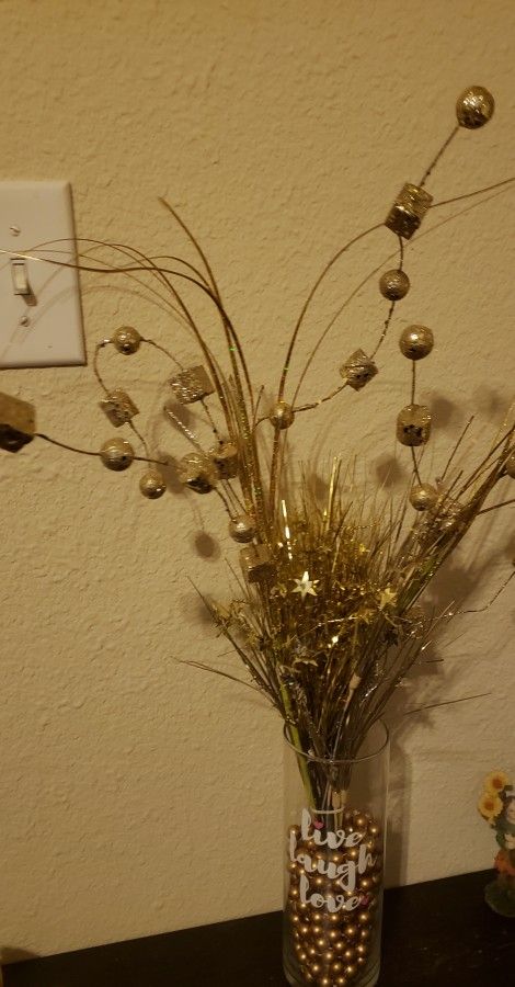 Vase filled with golden beads and then golden stems look awesome.