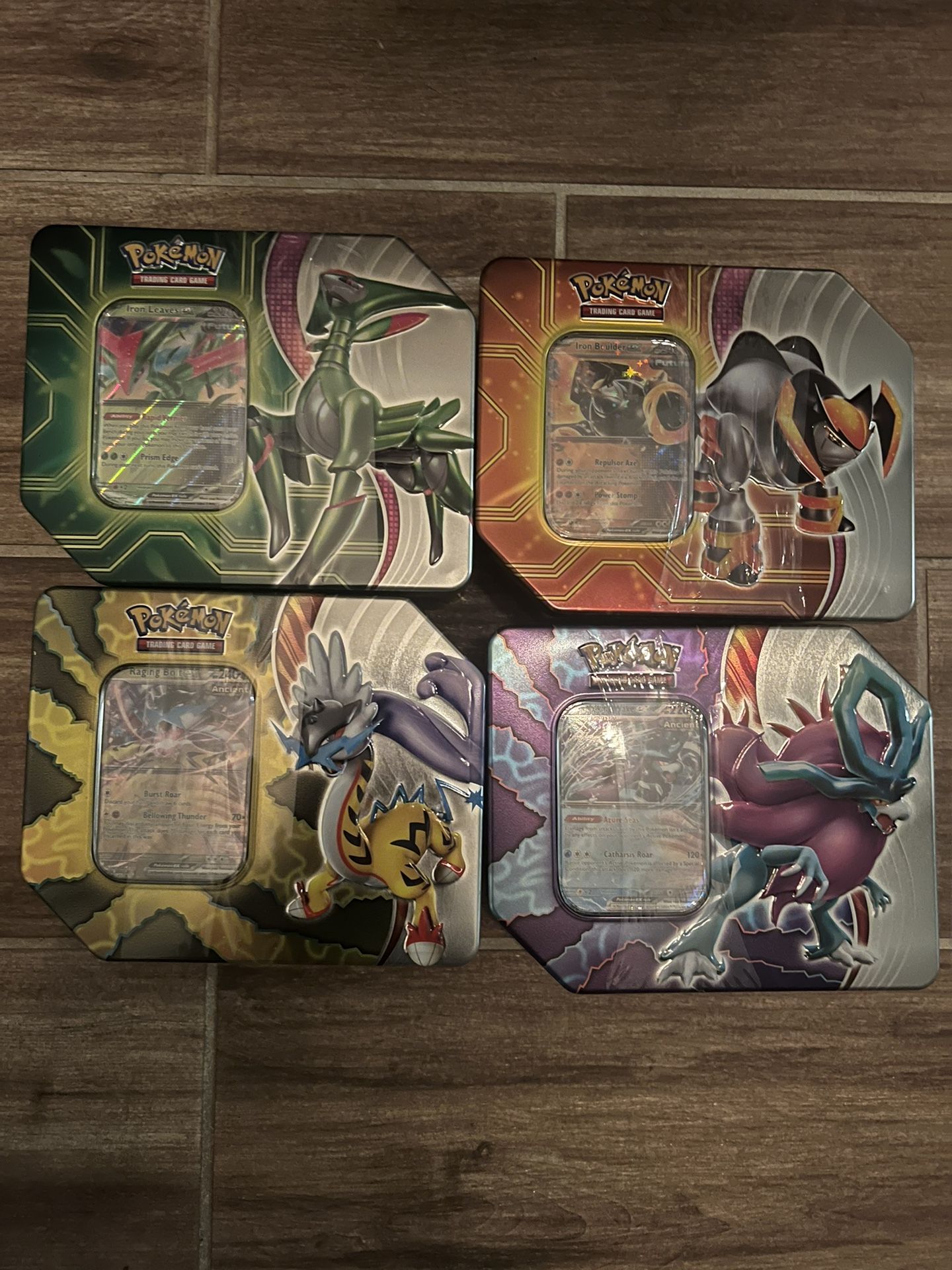 Brand new in box Pokemon Paradox Destinies Tins. I have Walking Wakes, iron leaves, iron boulder, and raging bolt. 5 of each tin available. Asking $30 per tin. Pickup near bell & grand ave.