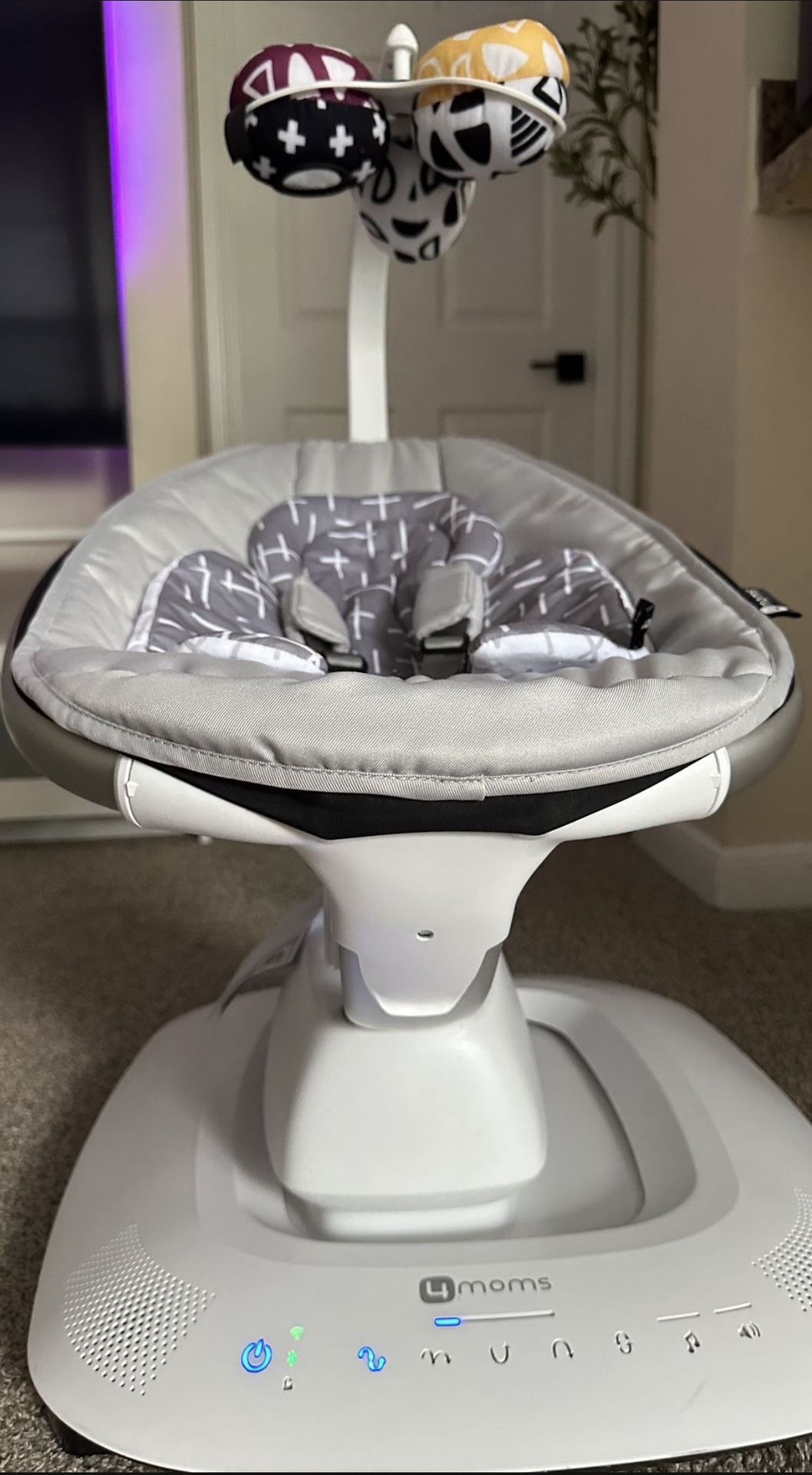 Like new, everything works well. It has all the accessories It also has the newborn accessory that is bought separately. The rocking chair works perfectly. It has different movements and music. The newest style that 4moms has released. Serious buyers only! HABLO ESPAÑOL ‼️ Como nuevo, todo funciona bien. Tiene todos los accesorios También tiene el accesorio para recién nacidos que se compra por separado. La mecedora funciona perfectamente. Tiene diferentes movimientos y música. El estilo más nuevo que 4moms ha lanzado. ¡Solo compradores serios!