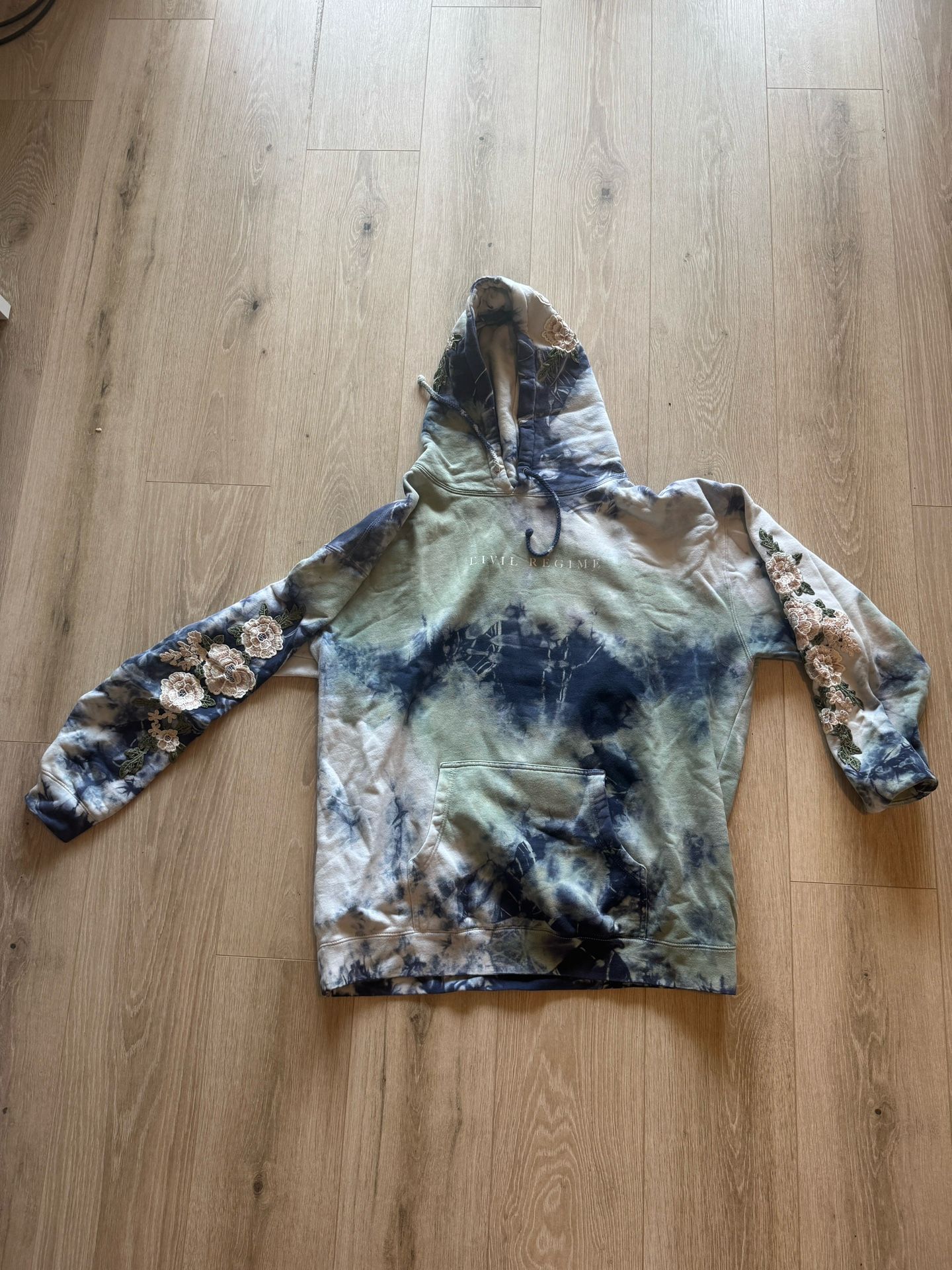 Limited edition civil regime roses hoodie in green tye dye. Barely worn