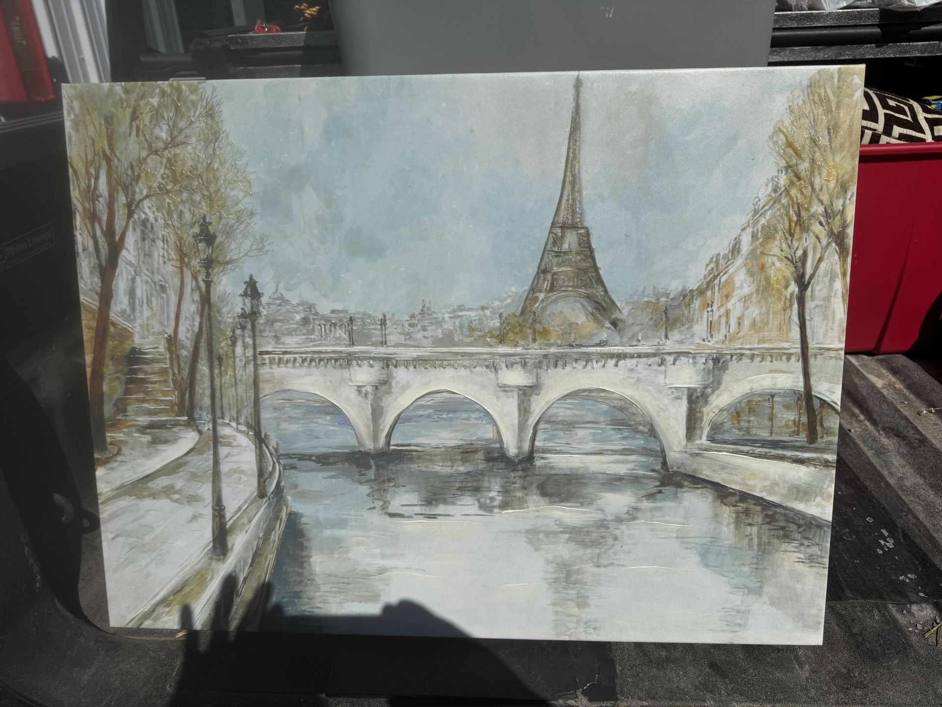 canvas art print of Paris which depicts a view of the Eiffel Tower along the Seine River.