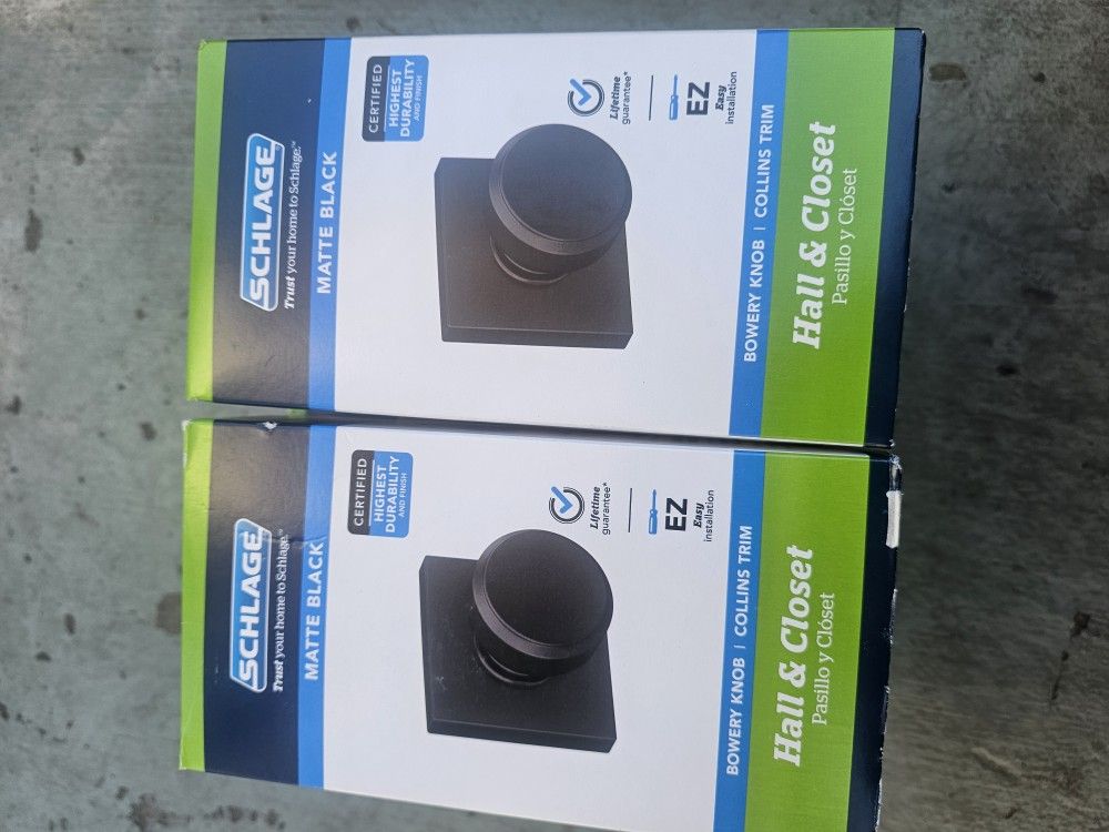 Schlage Bowery hall and closet door knob asking $15 for each i have 4 sets . Brand new nuevas