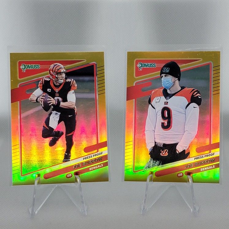 Joe Burrow 2021 Panini Donruss Holo Premium Gold Press Proof Variation Bangels 2nd year NfL, Prizm, Optic, Select, Mosaic, Donruss, football, Quarterback