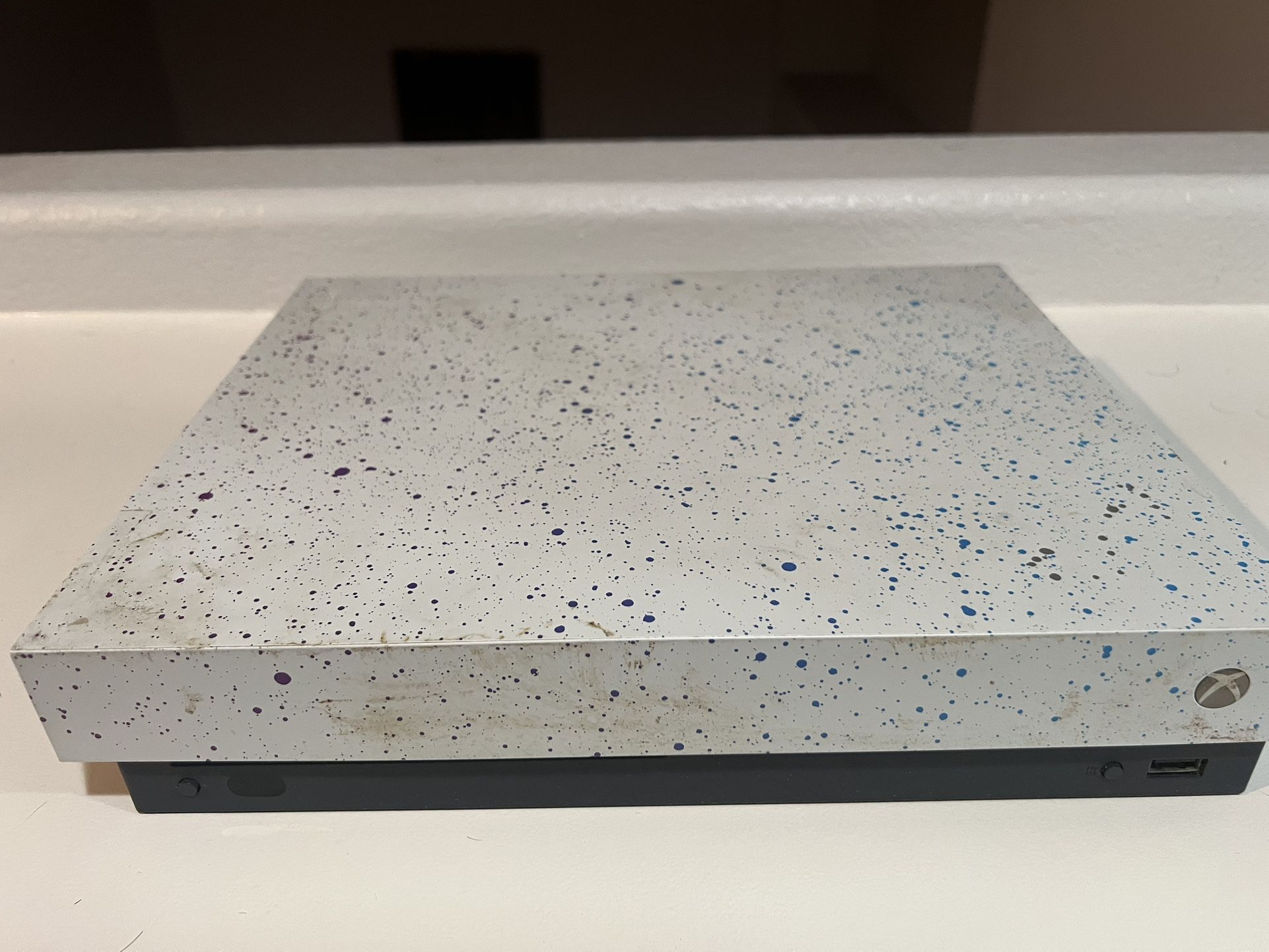 Xbox One X NBA 2k20 edition. No controller just console and power cable. There is some stains and stuff most is cleaned off but there is still some spots.
