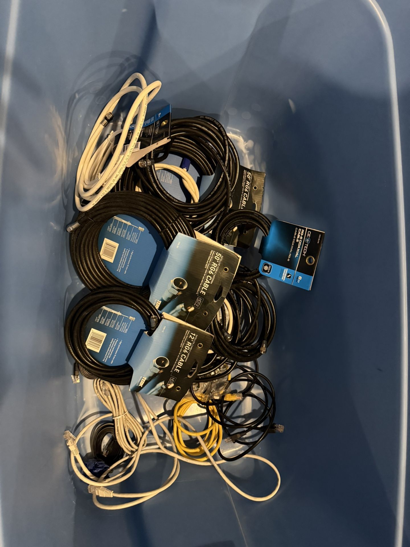 Selling RG6 coaxial and Ethernet cables from a recent move—no longer needed. Good condition, ideal for internet, TV, or networking setups.