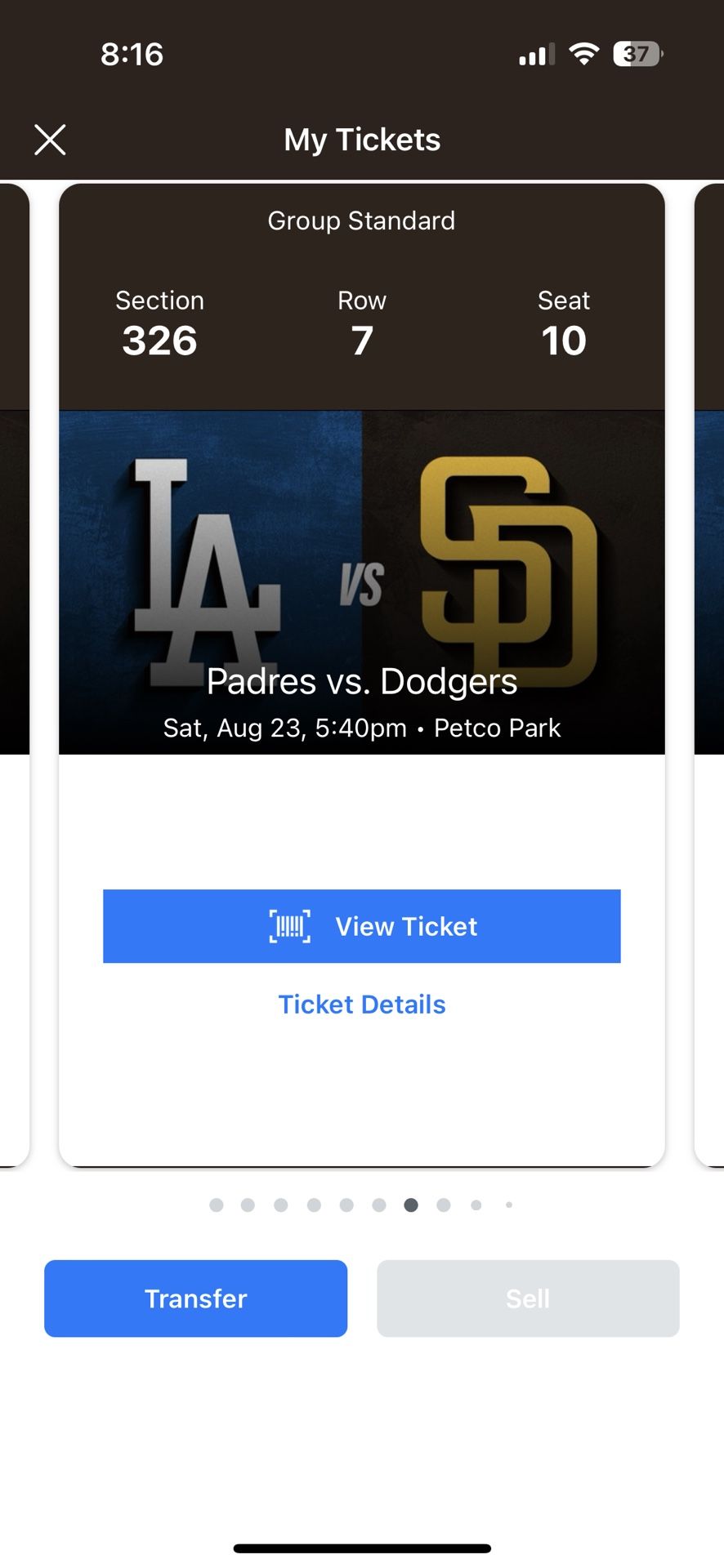 Saturday August 23rd 5:40PM Section 326 Row 7 Seat 10 $115