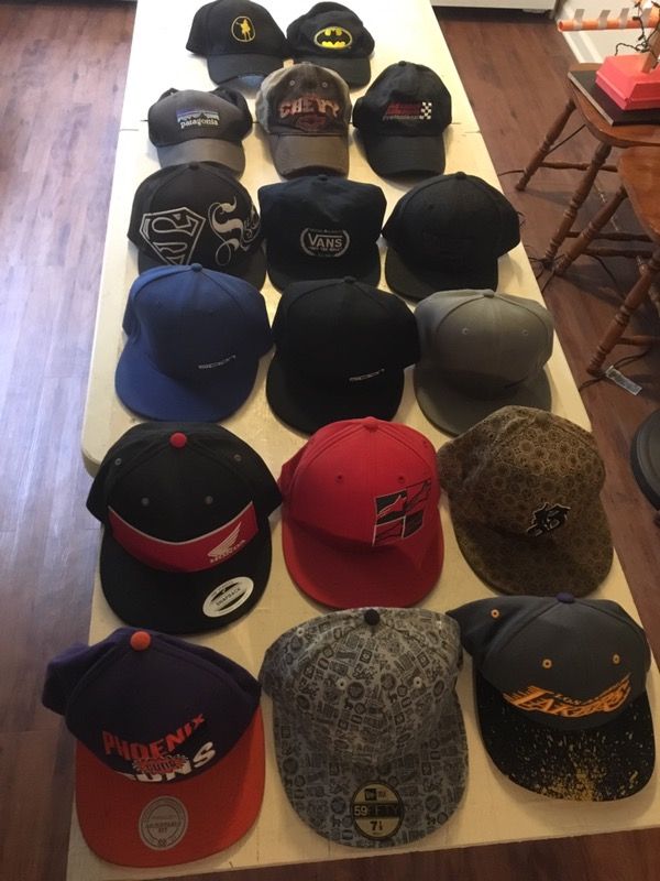 Some never worn, some worn once, some old. Some fitted, some snap back, flat bill, baseball caps, etc. hmu for more pics or see other posts