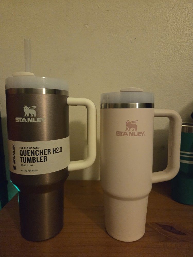 The Bronze 40oz tumber is brand new never been used. $20 The rose pink 30oz is missing the straw $10 Best offer for both Will trade for hammertone green cup